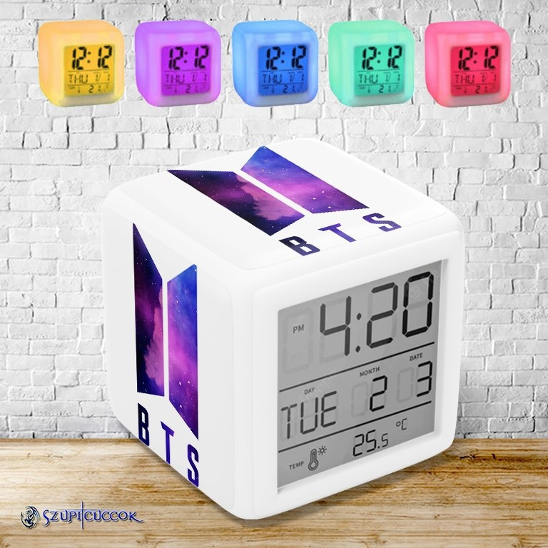 BTS Galaxy logó színváltós világító ébresztő óra