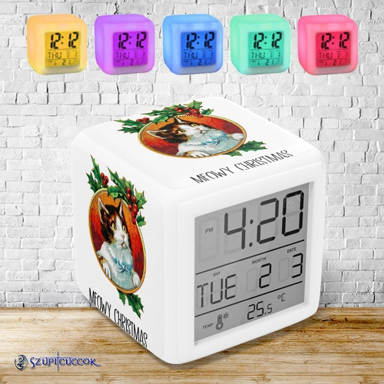 Meowy Christmas színváltós világító ébresztő óra