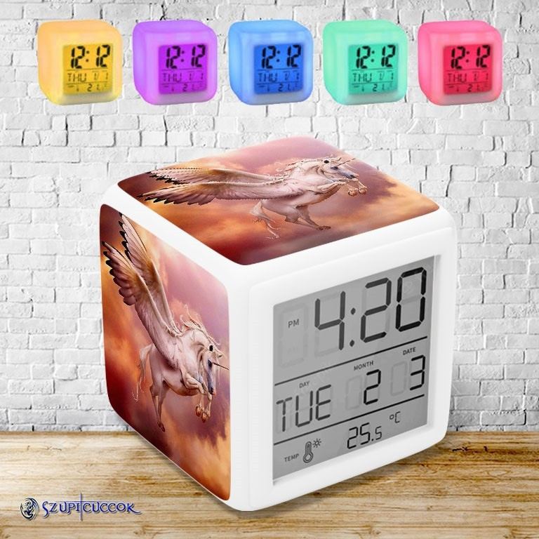 Csodálatos Pegazus színváltós világító ébresztő óra