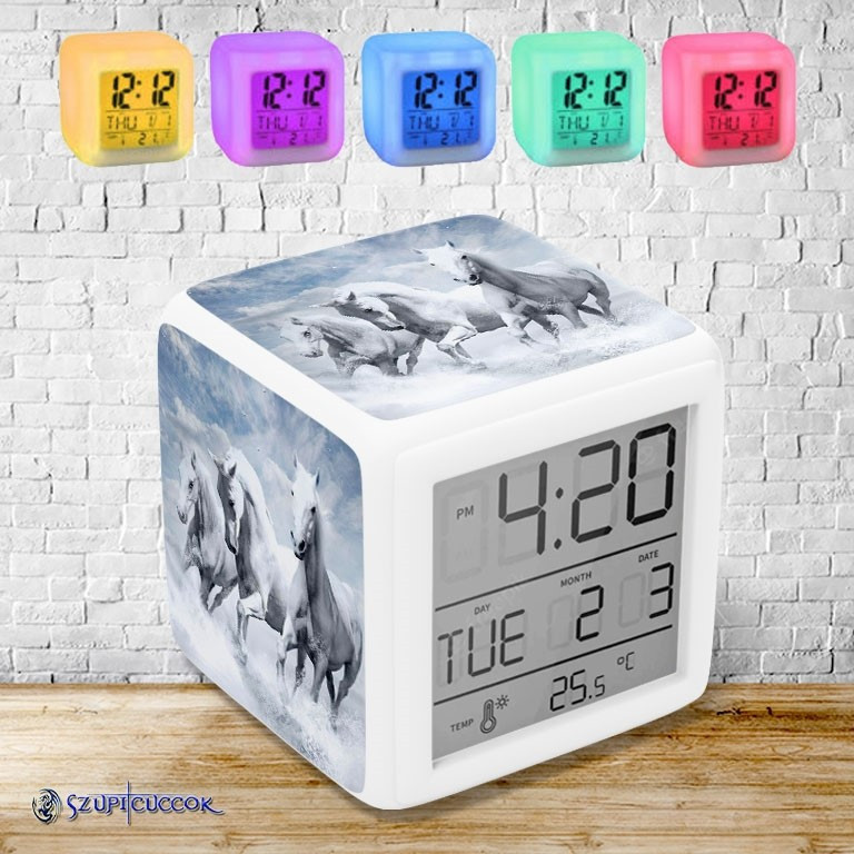 Fehér lovak színváltós világító ébresztő óra